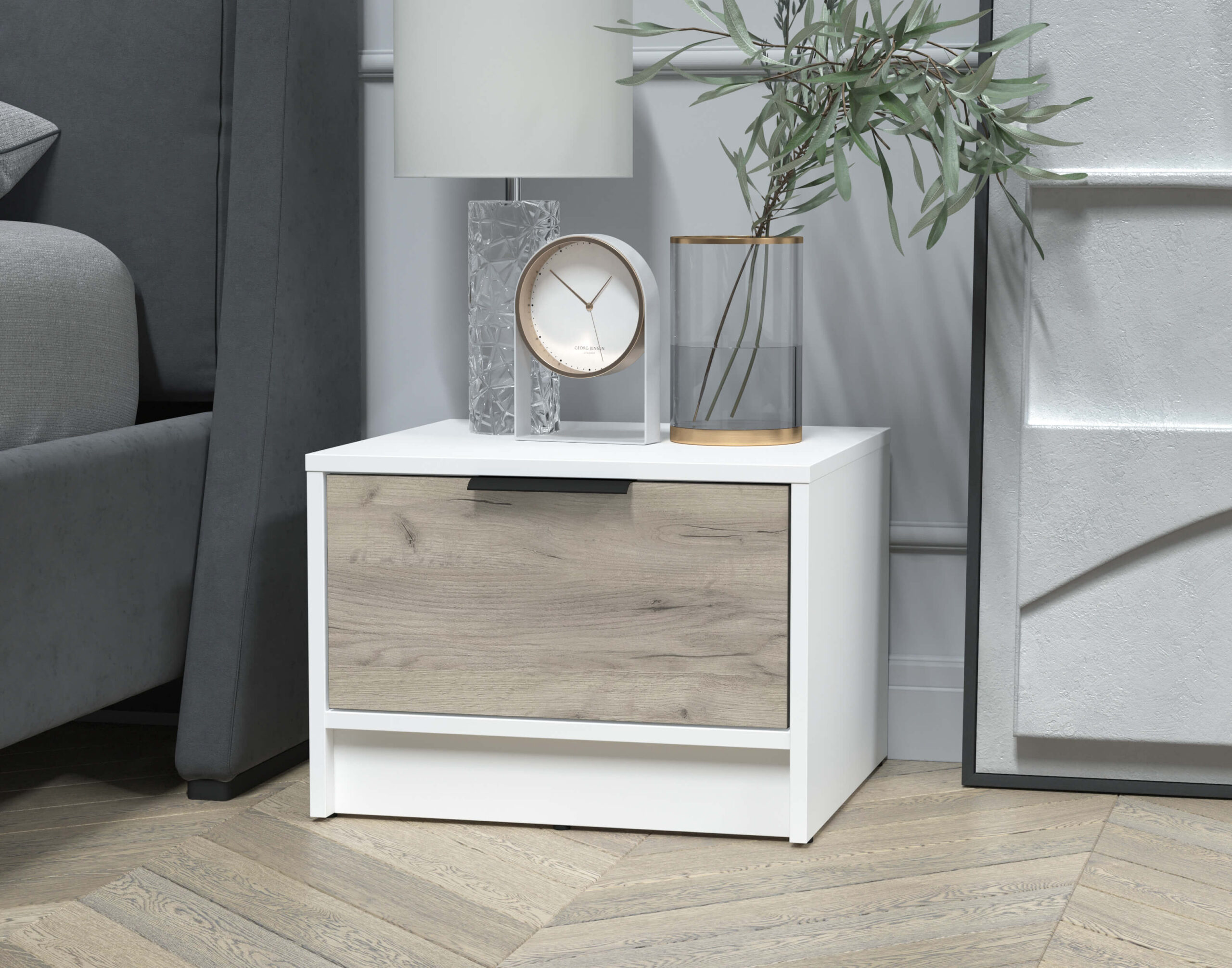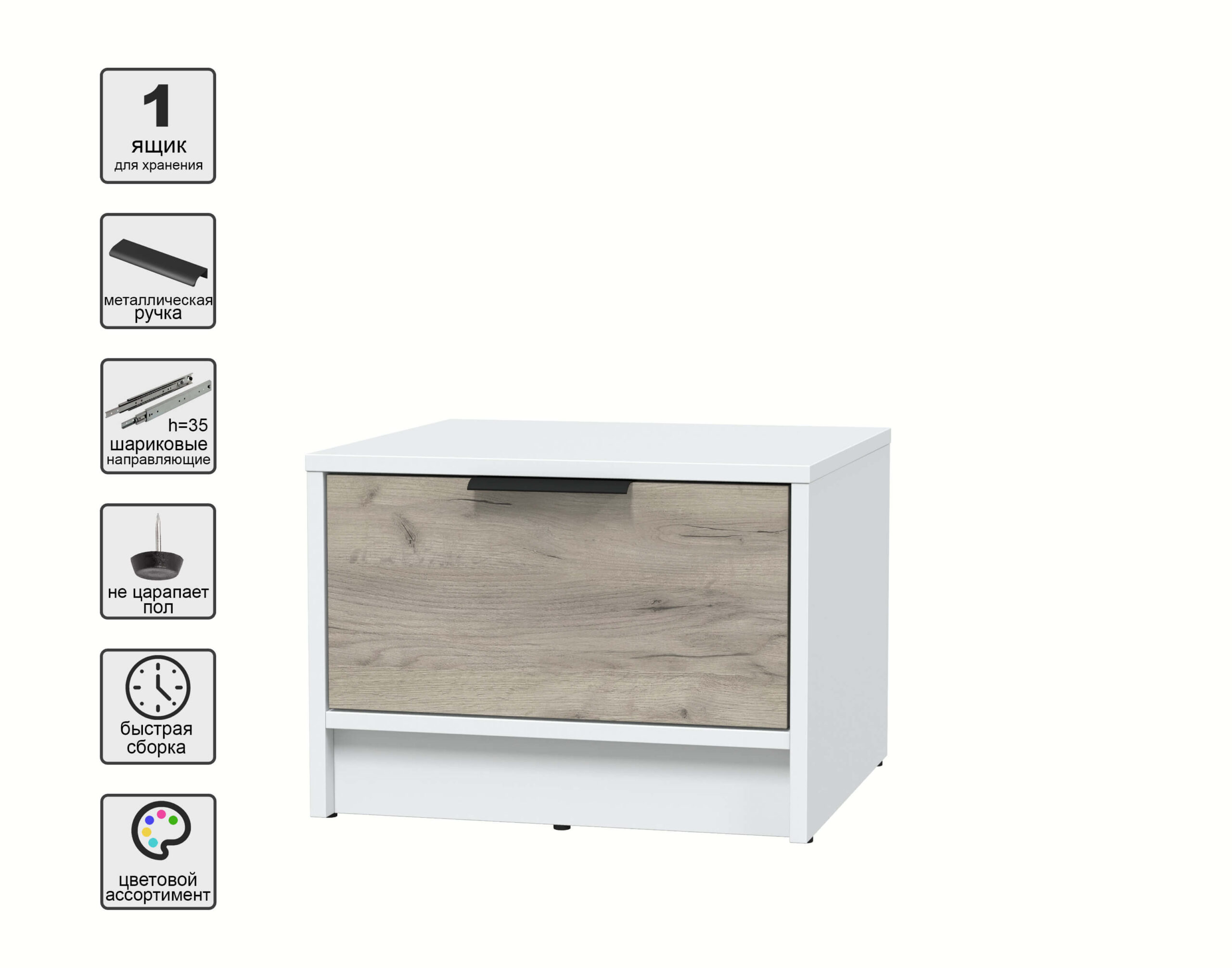 ТУМБА ПРИКРОВАТНАЯ КТ-ТК1-35 (БЕЛЫЙ ЛДСП/ ДУБ СЕРЫЙ ЛДСП) Ш477 В348 Г451 - Yuta.by