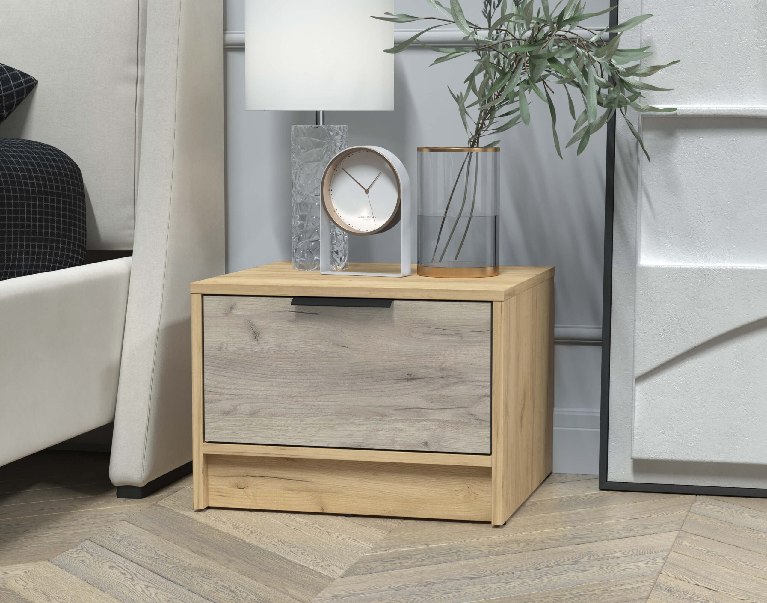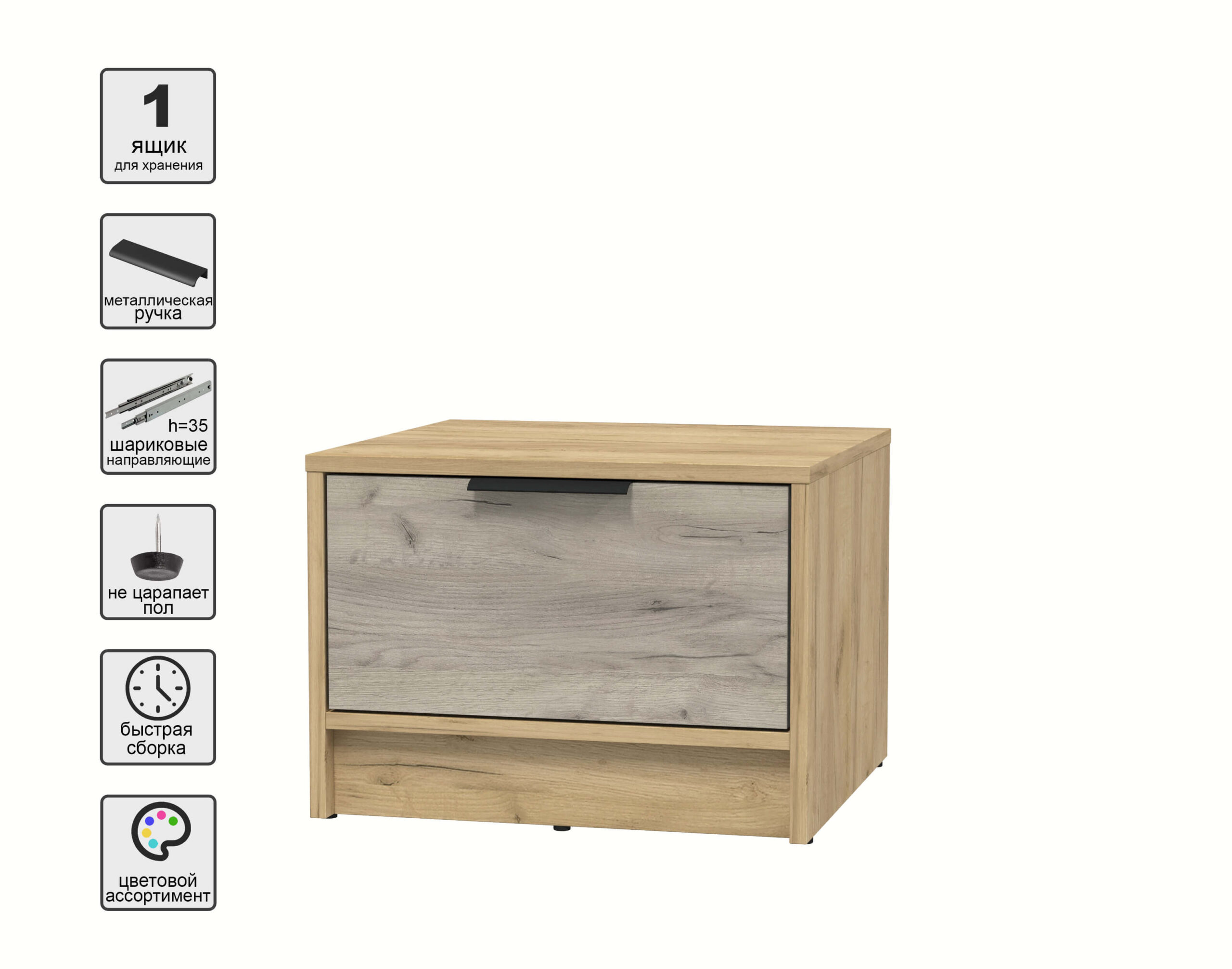 ТУМБА ПРИКРОВАТНАЯ КТ-ТК1-35 (ДУБ ЗОЛОТОЙ ЛДСП/ ДУБ СЕРЫЙ ЛДСП) Ш477 В348 Г451 - Yuta.by