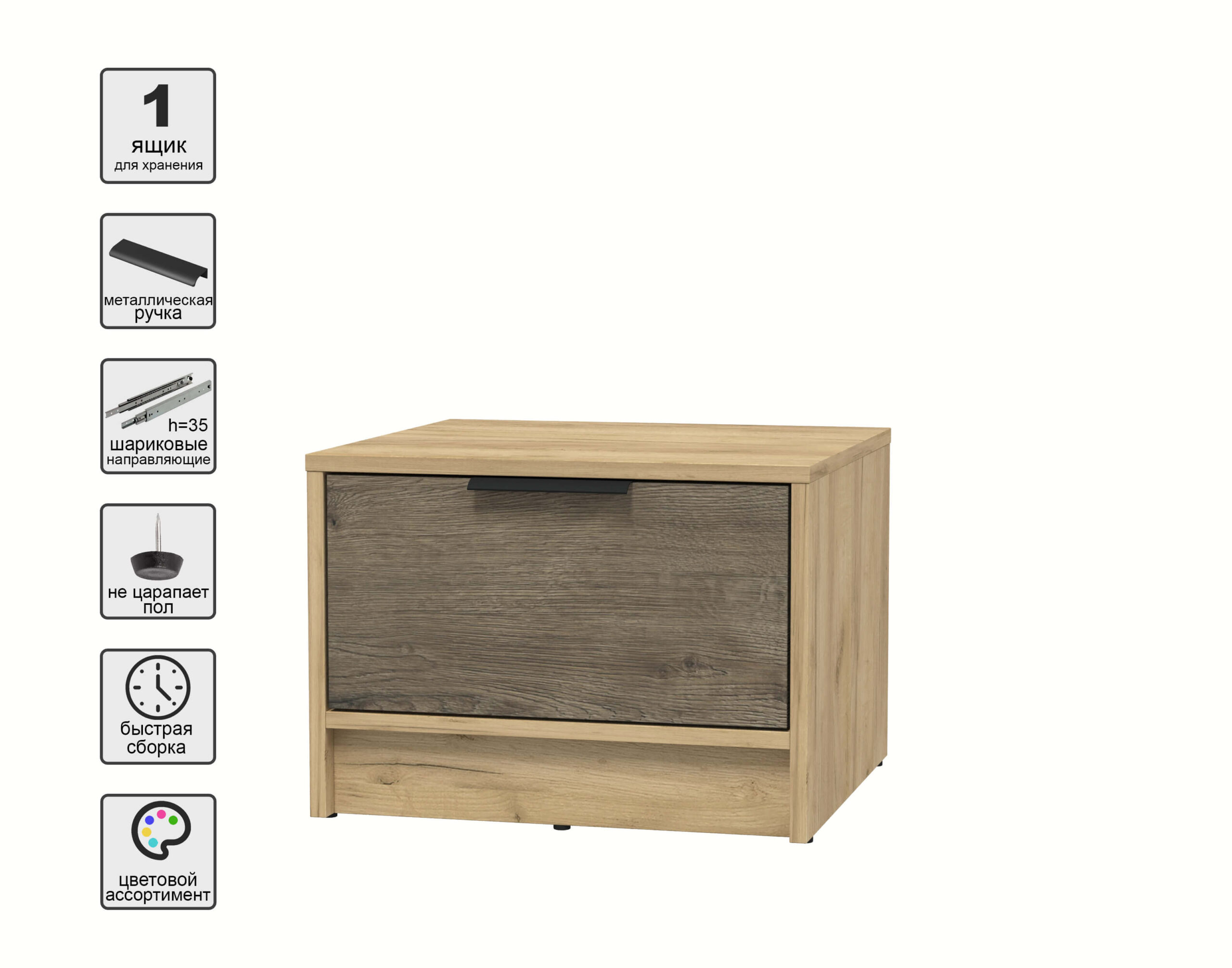 ТУМБА ПРИКРОВАТНАЯ КТ-ТК1-35 (ДУБ ЗОЛОТОЙ ЛДСП/ ДУБ ВЕЛЛИНГТОН ЛДСП) Ш477 В348 Г451