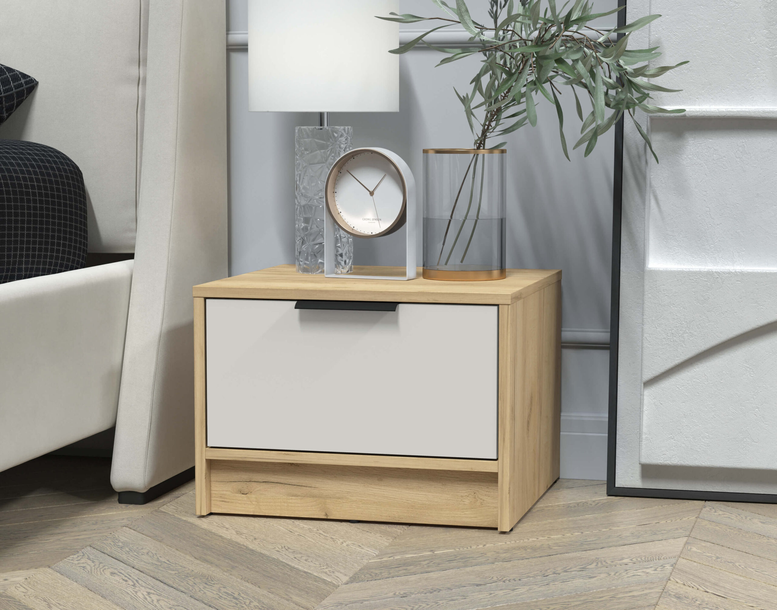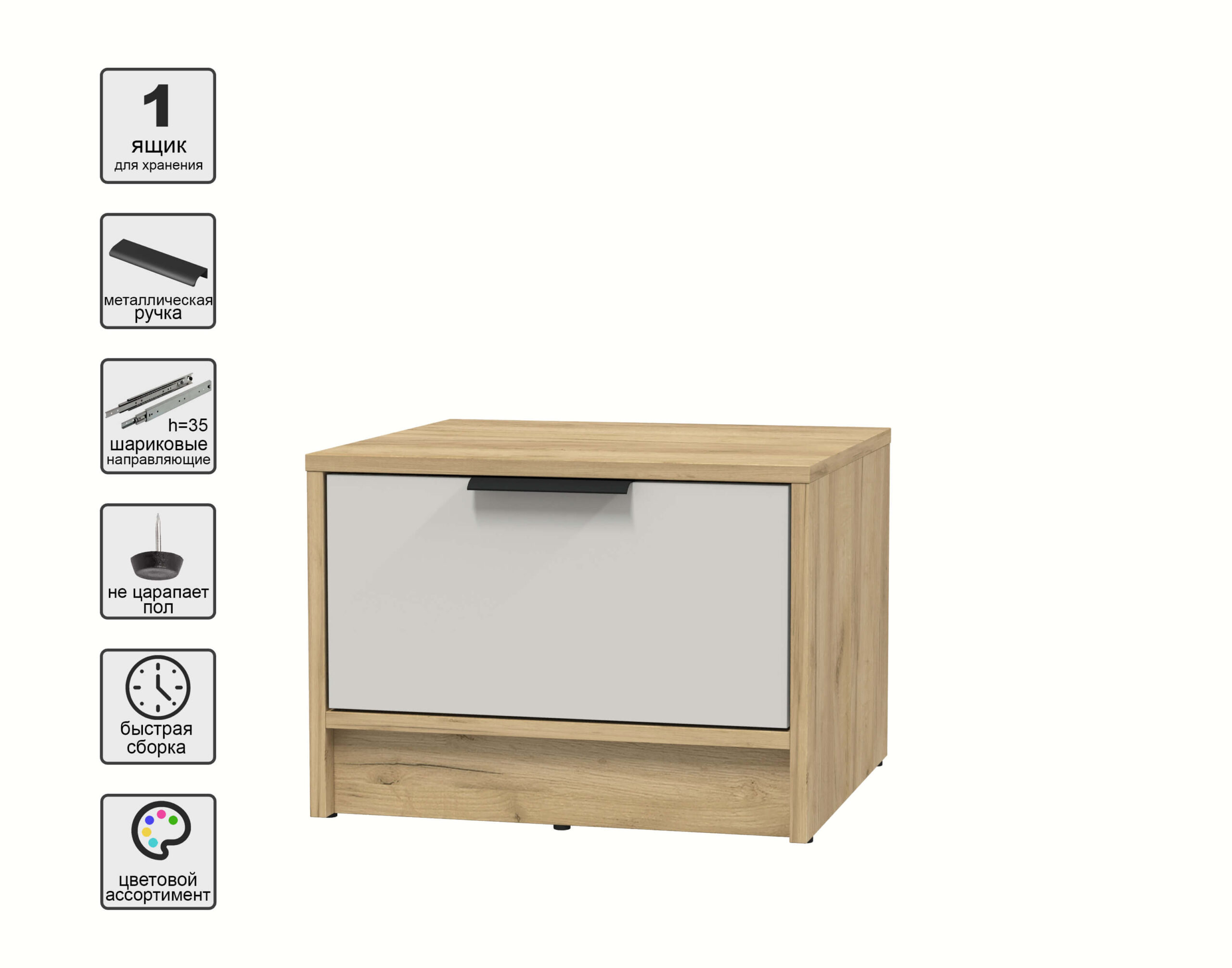 ТУМБА ПРИКРОВАТНАЯ КТ-ТК1-35 (ДУБ ЗОЛОТОЙ ЛДСП/ ПЕРСИДСКИЙ ЖЕМЧУГ ЛДСП) Ш477 В348 Г451 - Yuta.by