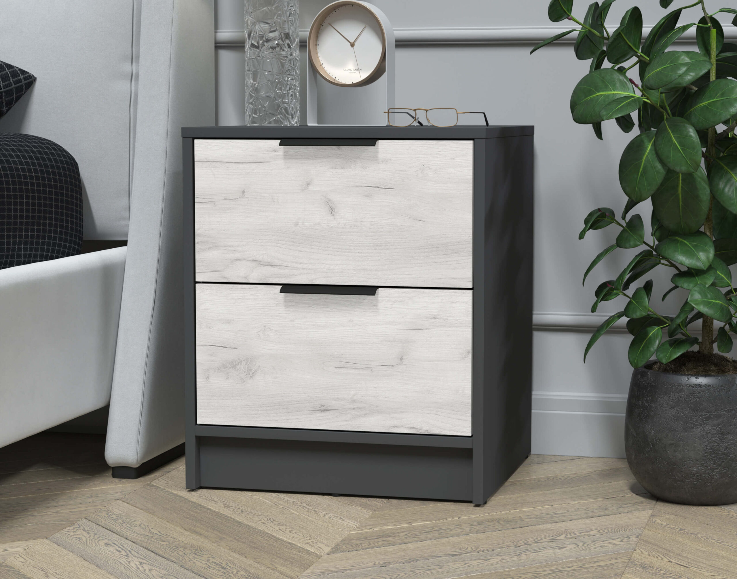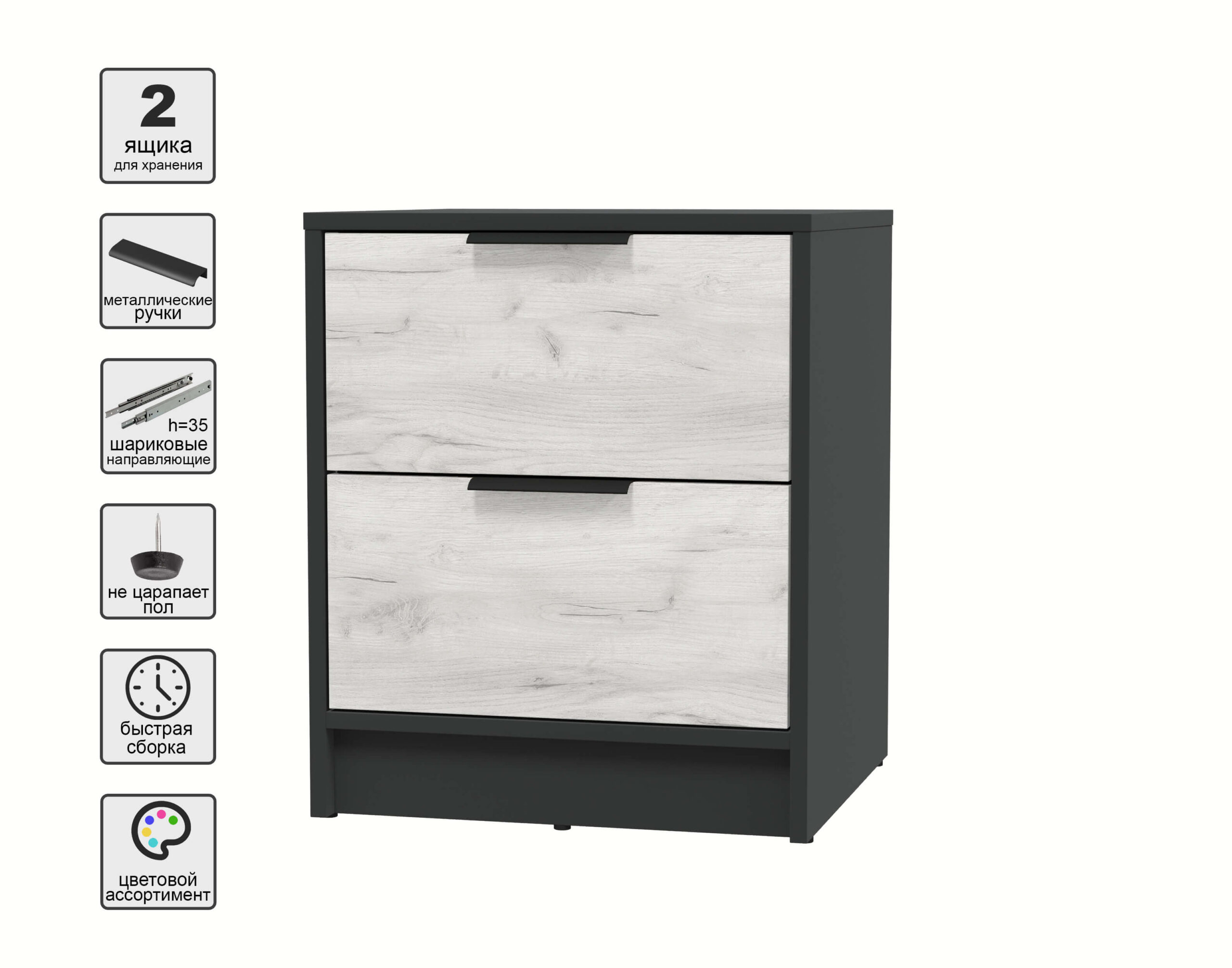 ТУМБА ПРИКРОВАТНАЯ КТ-ТК1-57 (АНТРАЦИТ ЛДСП/ ДУБ БЕЛЫЙ ЛДСП) Ш477 В572 Г451 - Yuta.by