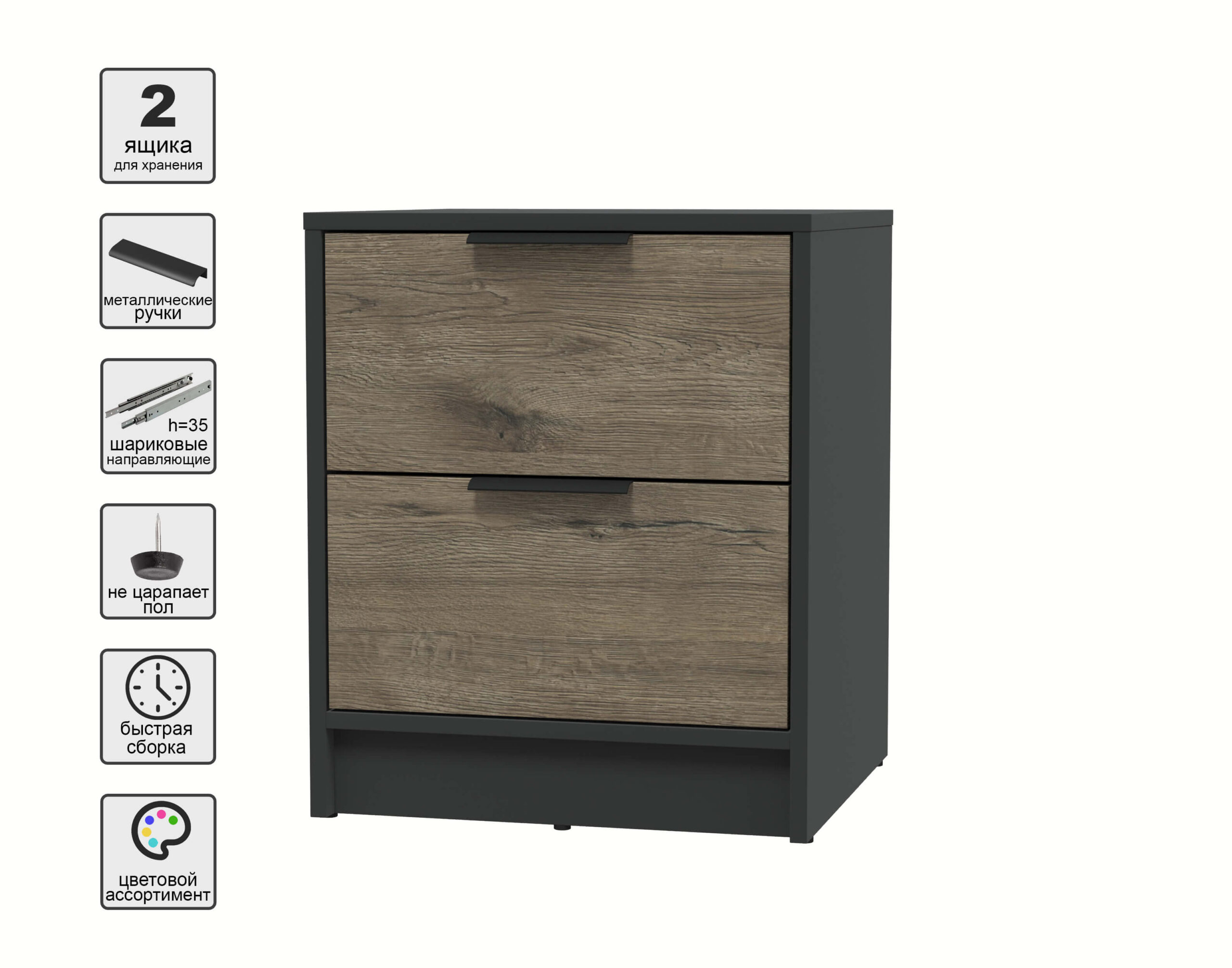 ТУМБА ПРИКРОВАТНАЯ КТ-ТК1-57 (АНТРАЦИТ ЛДСП/ ДУБ ВЕЛЛИНГТОН ЛДСП) Ш477 В572 Г451