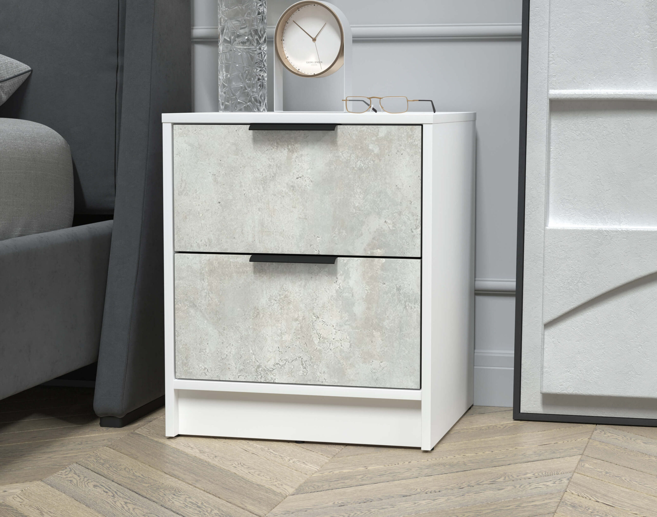 ТУМБА ПРИКРОВАТНАЯ КТ-ТК1-57 (БЕЛЫЙ ЛДСП/ БЕТОН ЛАЙТ ЛДСП) Ш477 В572 Г451 - Yuta.by