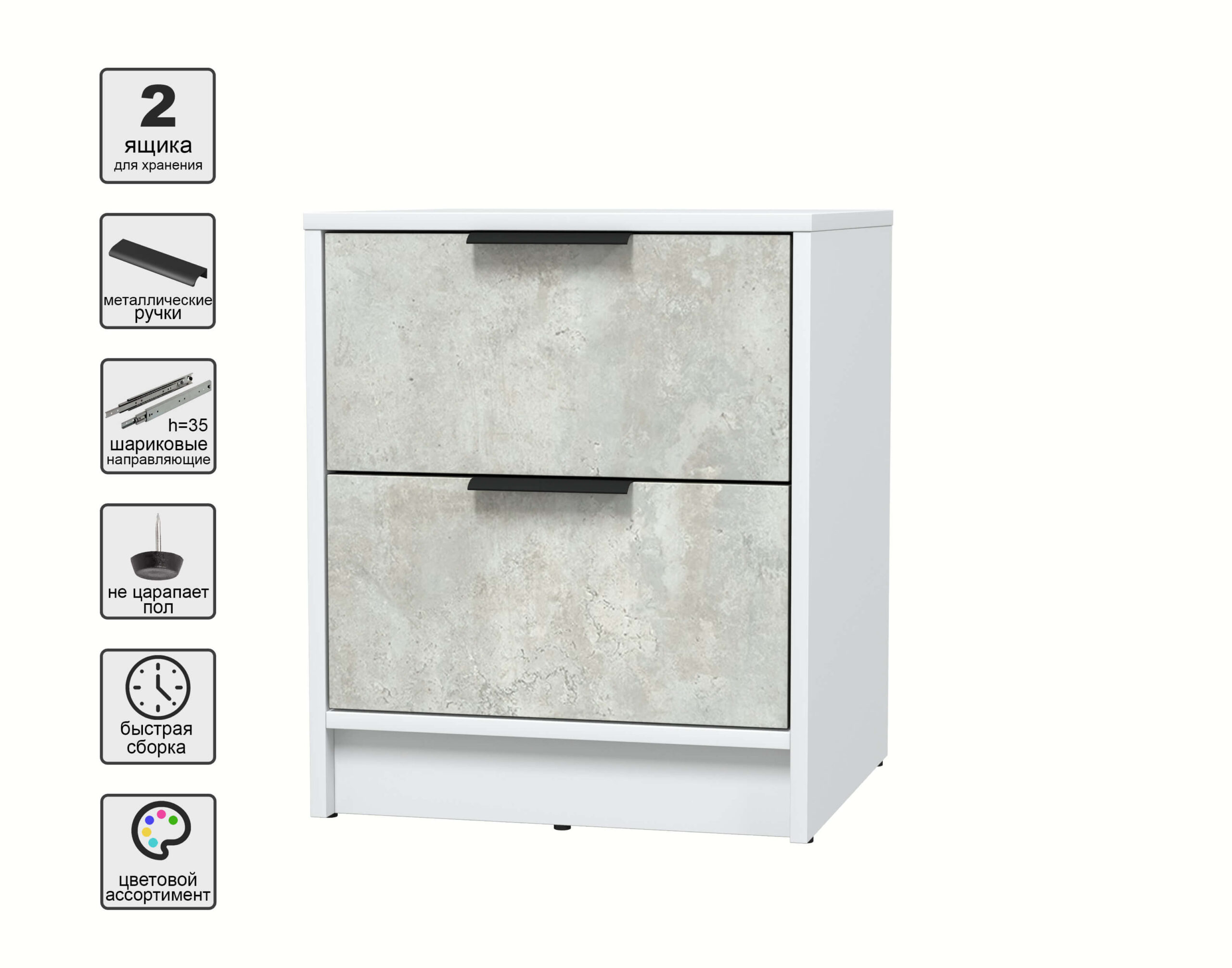 ТУМБА ПРИКРОВАТНАЯ КТ-ТК1-57 (БЕЛЫЙ ЛДСП/ БЕТОН ЛАЙТ ЛДСП) Ш477 В572 Г451