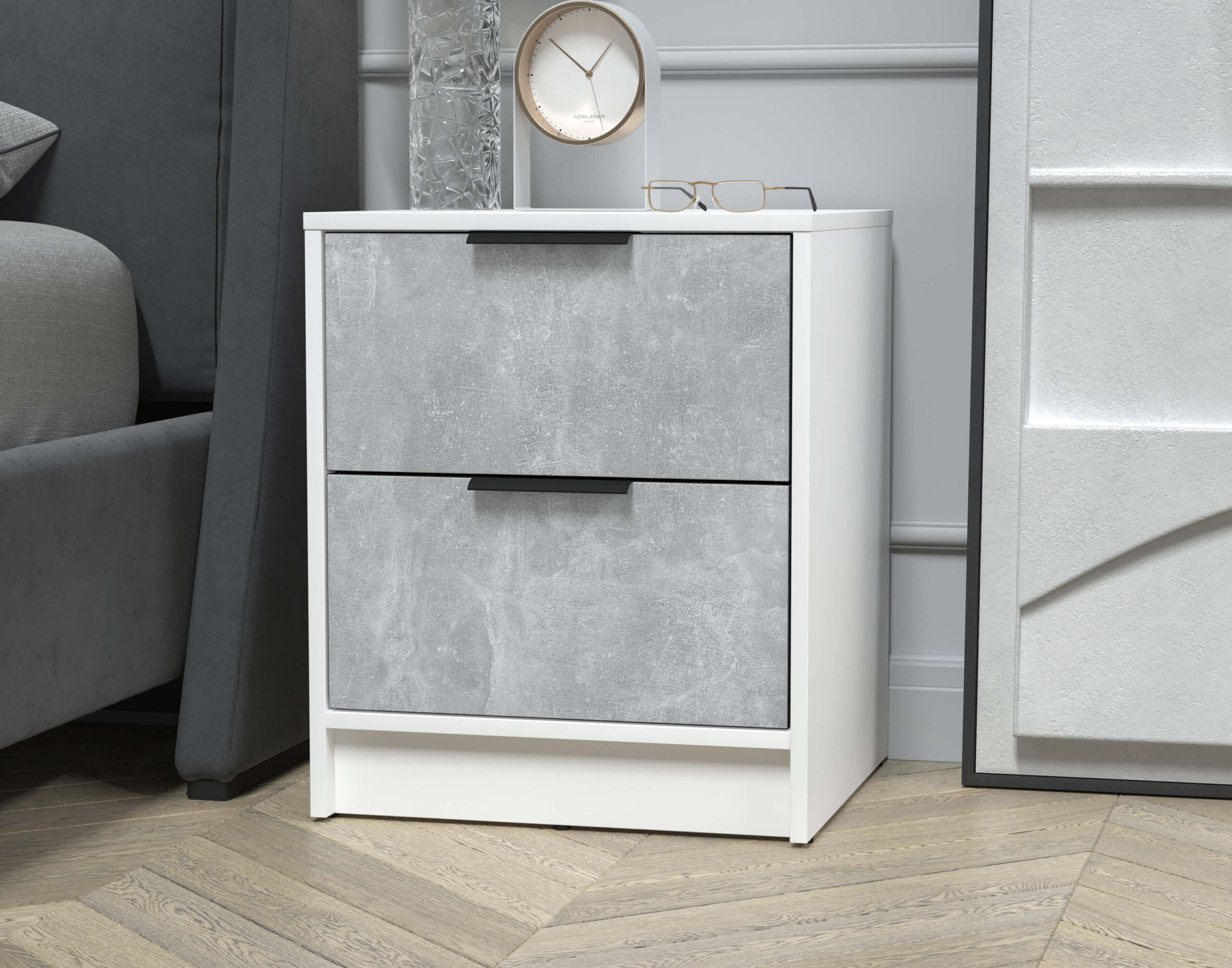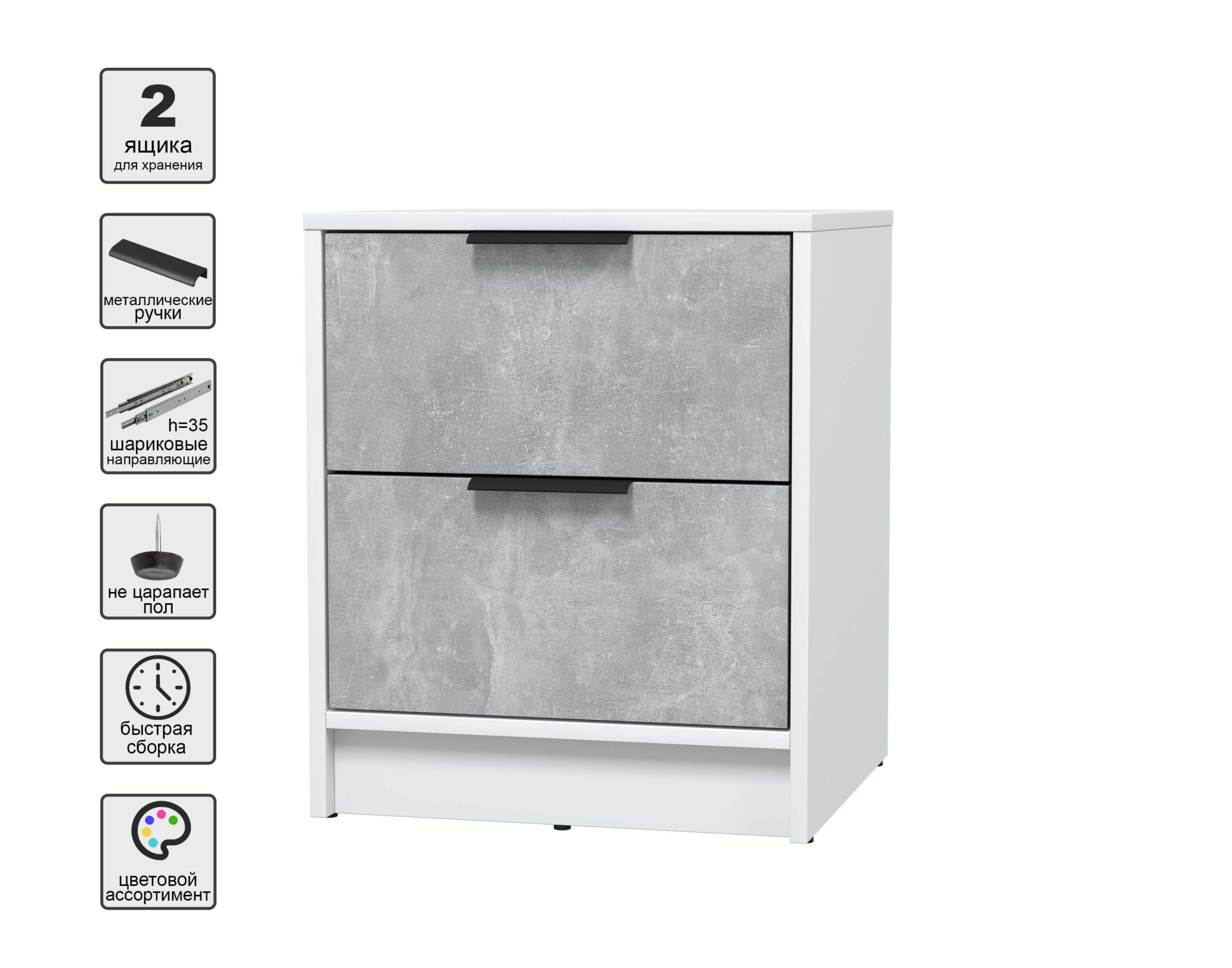 ТУМБА ПРИКРОВАТНАЯ КТ-ТК1-57 (БЕЛЫЙ ЛДСП/ БЕТОН ЛДСП) Ш477 В572 Г451 - Yuta.by