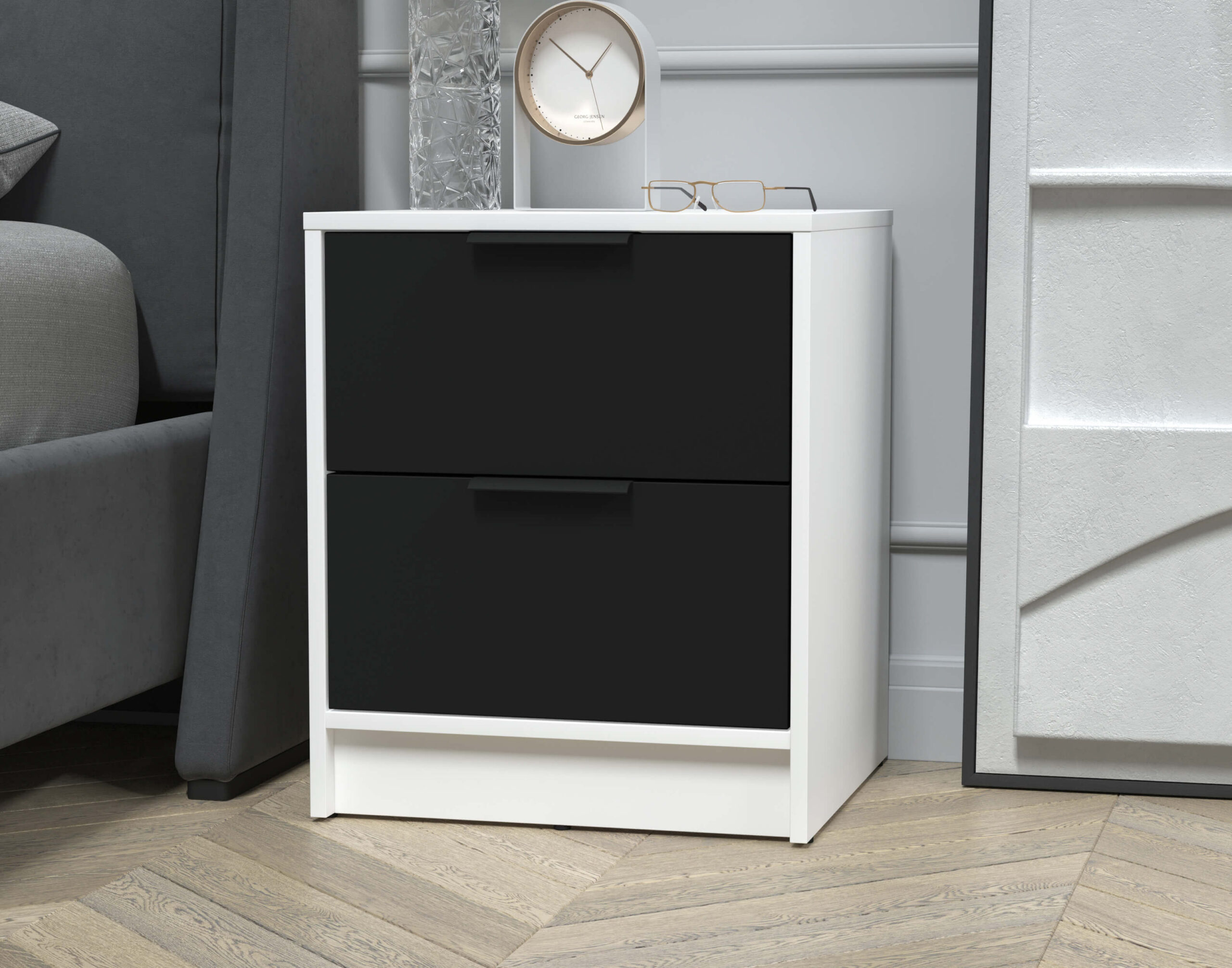 ТУМБА ПРИКРОВАТНАЯ КТ-ТК1-57 (БЕЛЫЙ ЛДСП/ ЧЕРНЫЙ ЛДСП) Ш477 В572 Г451 - Yuta.by