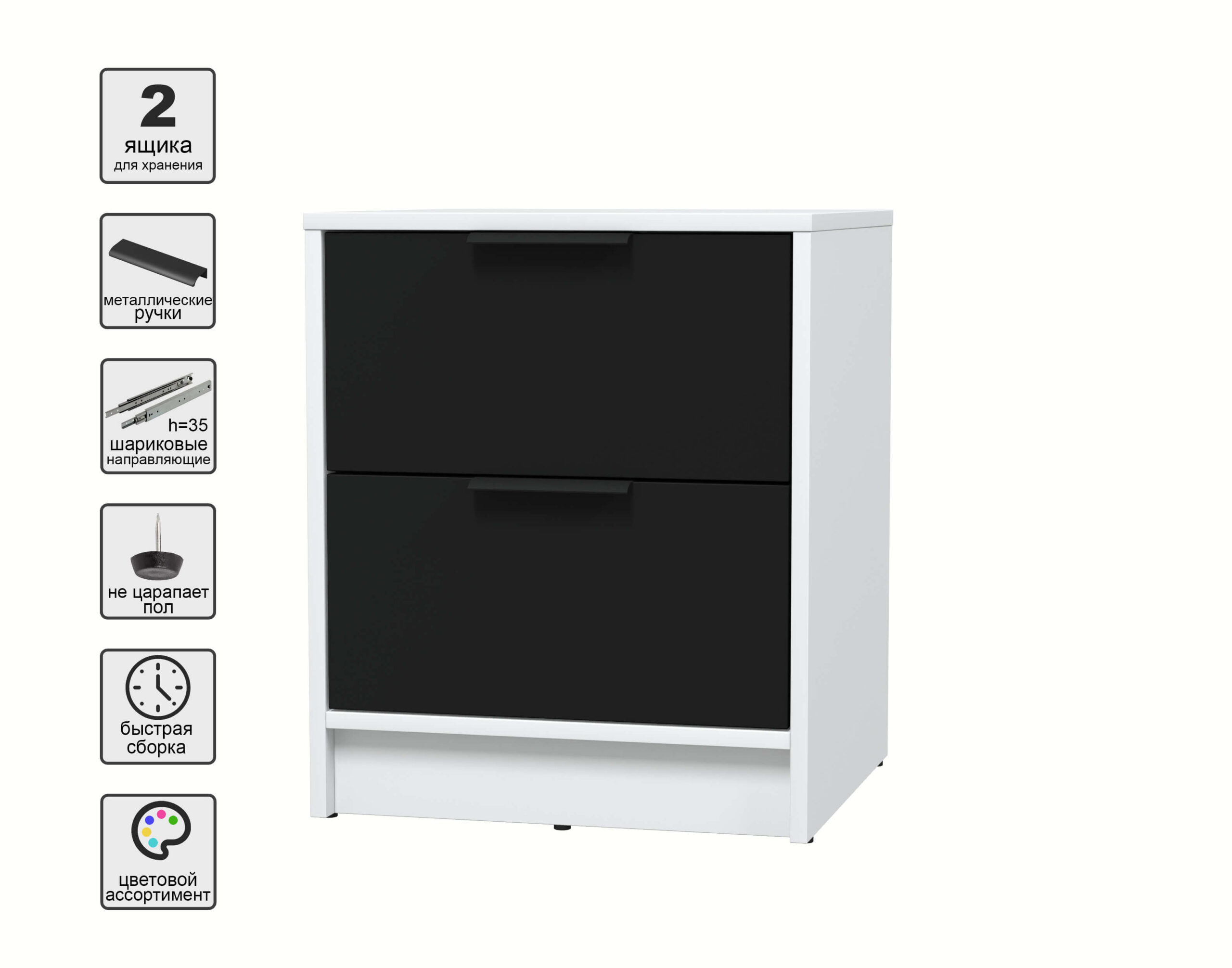 ТУМБА ПРИКРОВАТНАЯ КТ-ТК1-57 (БЕЛЫЙ ЛДСП/ ЧЕРНЫЙ ЛДСП) Ш477 В572 Г451