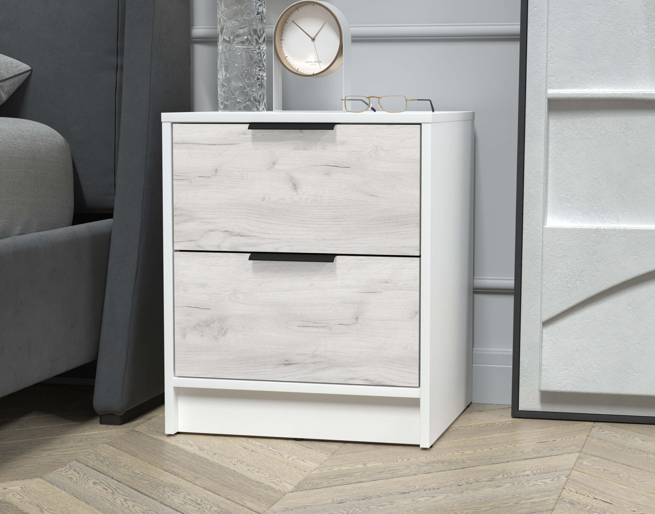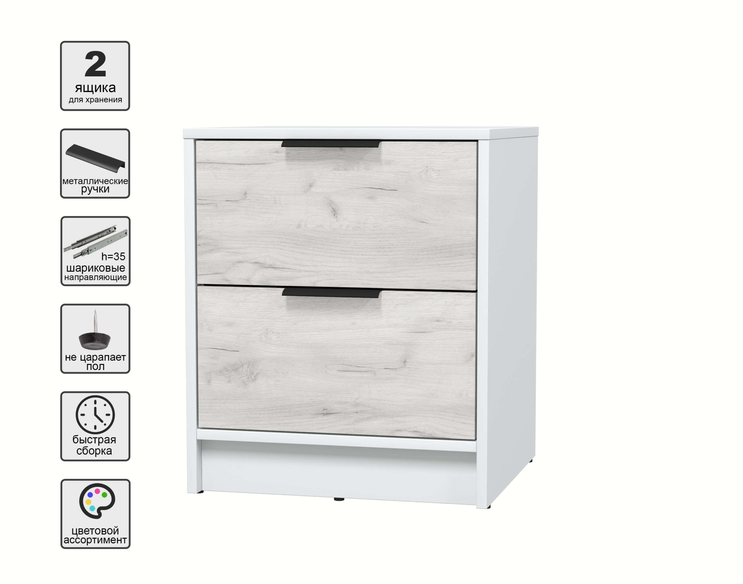 ТУМБА ПРИКРОВАТНАЯ КТ-ТК1-57 (БЕЛЫЙ ЛДСП/ ДУБ БЕЛЫЙ ЛДСП) Ш477 В572 Г451 - Yuta.by