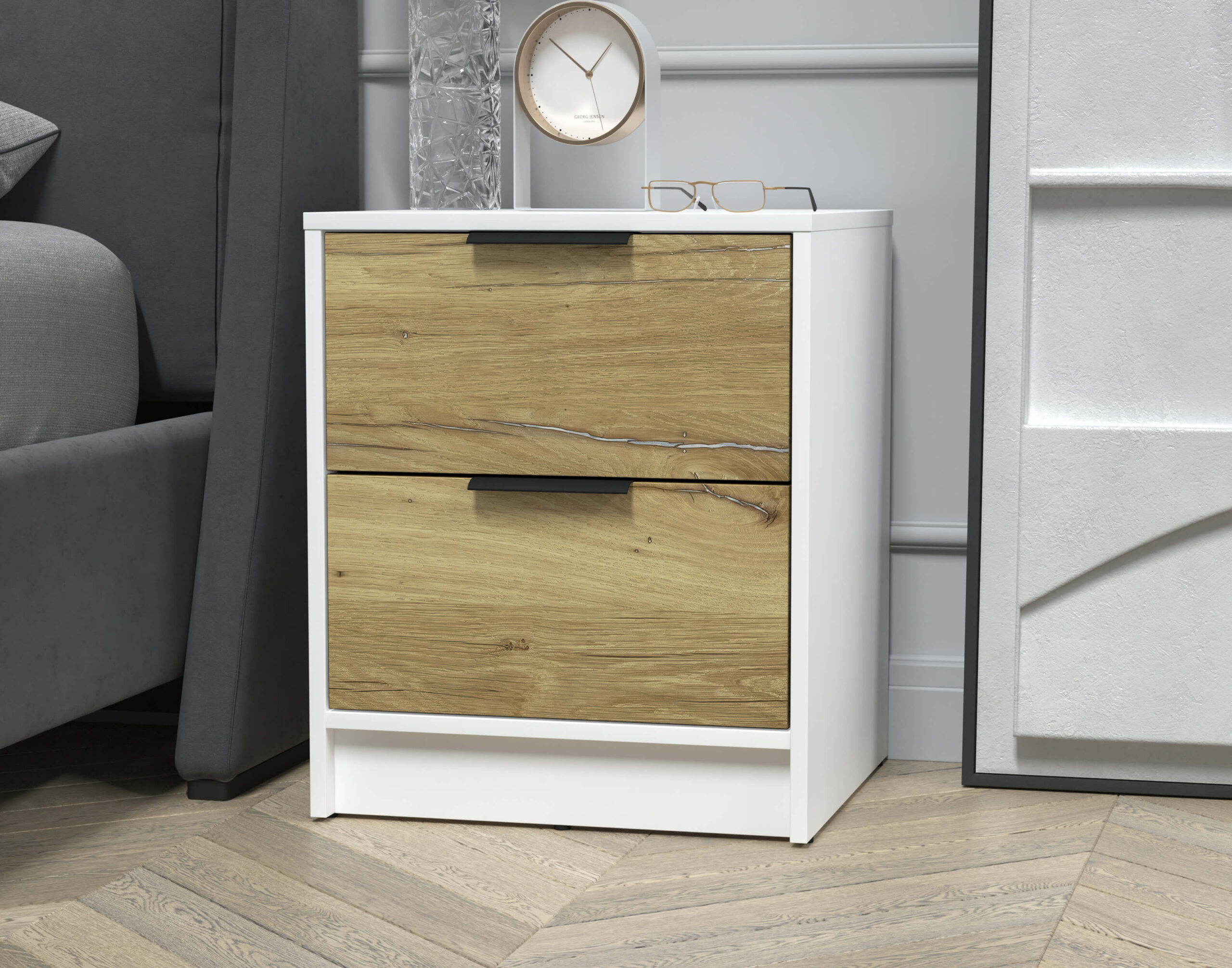 ТУМБА ПРИКРОВАТНАЯ КТ-ТК1-57 (БЕЛЫЙ ЛДСП/ ДУБ НОКС ЛДСП) Ш477 В572 Г451 - Yuta.by