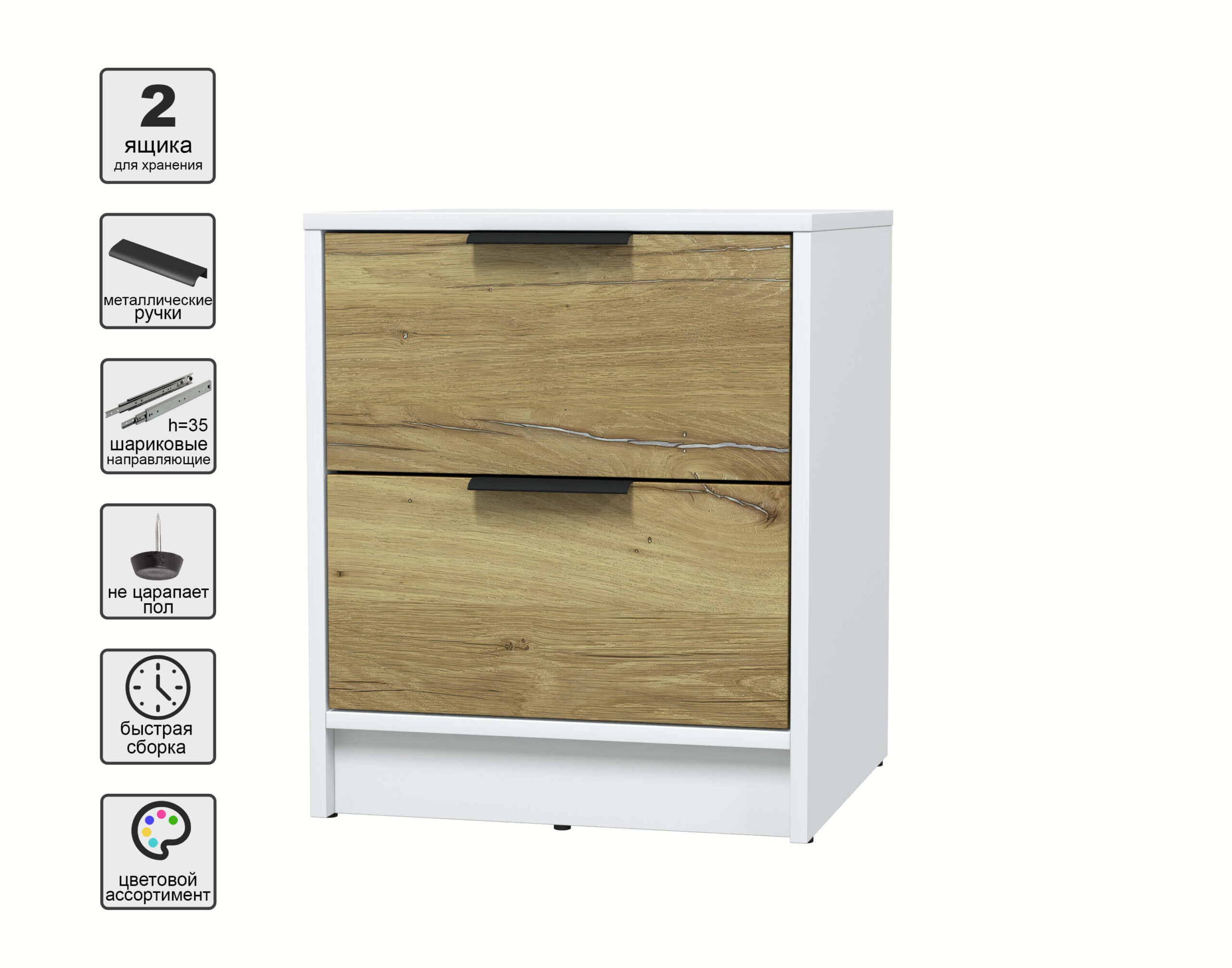ТУМБА ПРИКРОВАТНАЯ КТ-ТК1-57 (БЕЛЫЙ ЛДСП/ ДУБ НОКС ЛДСП) Ш477 В572 Г451