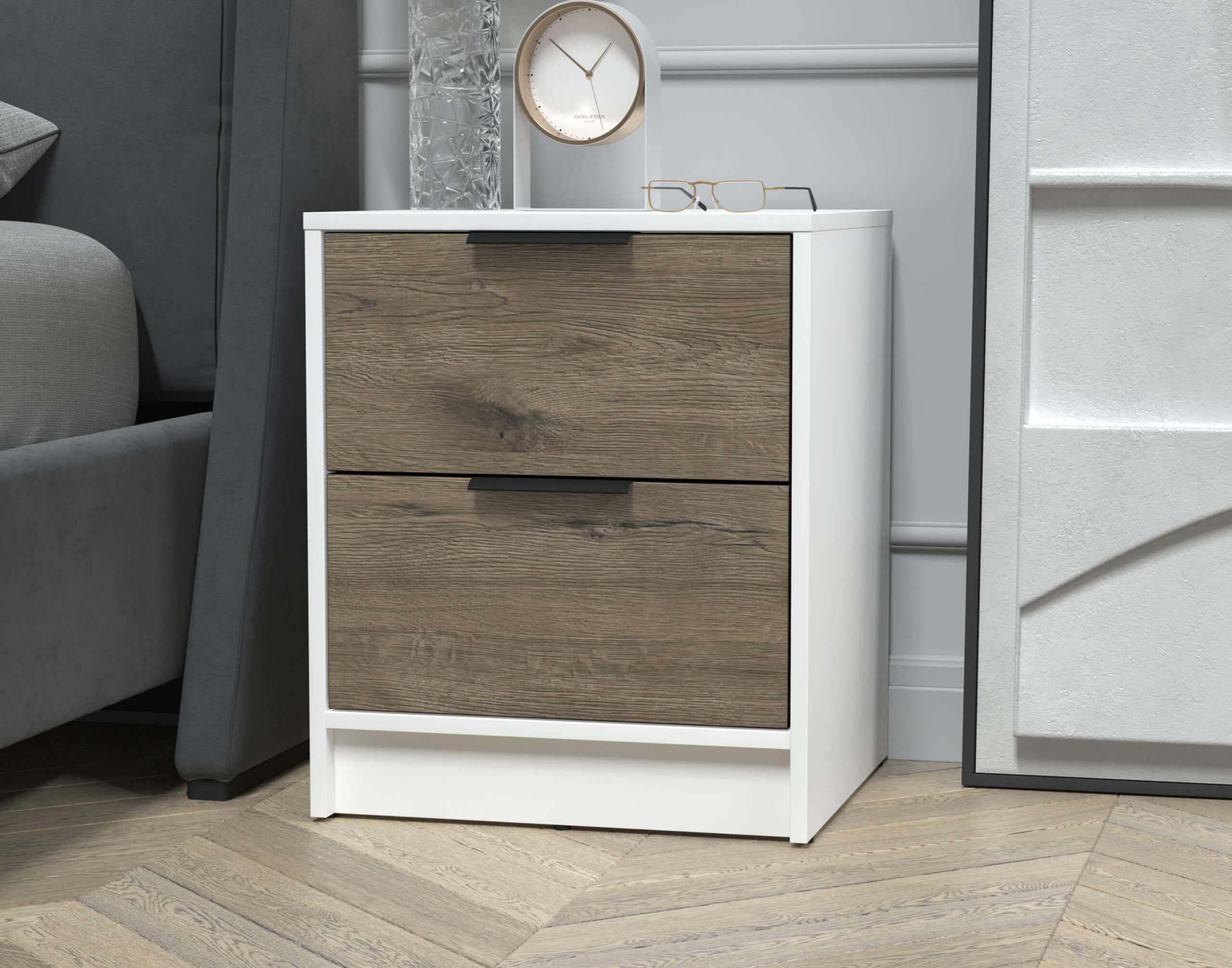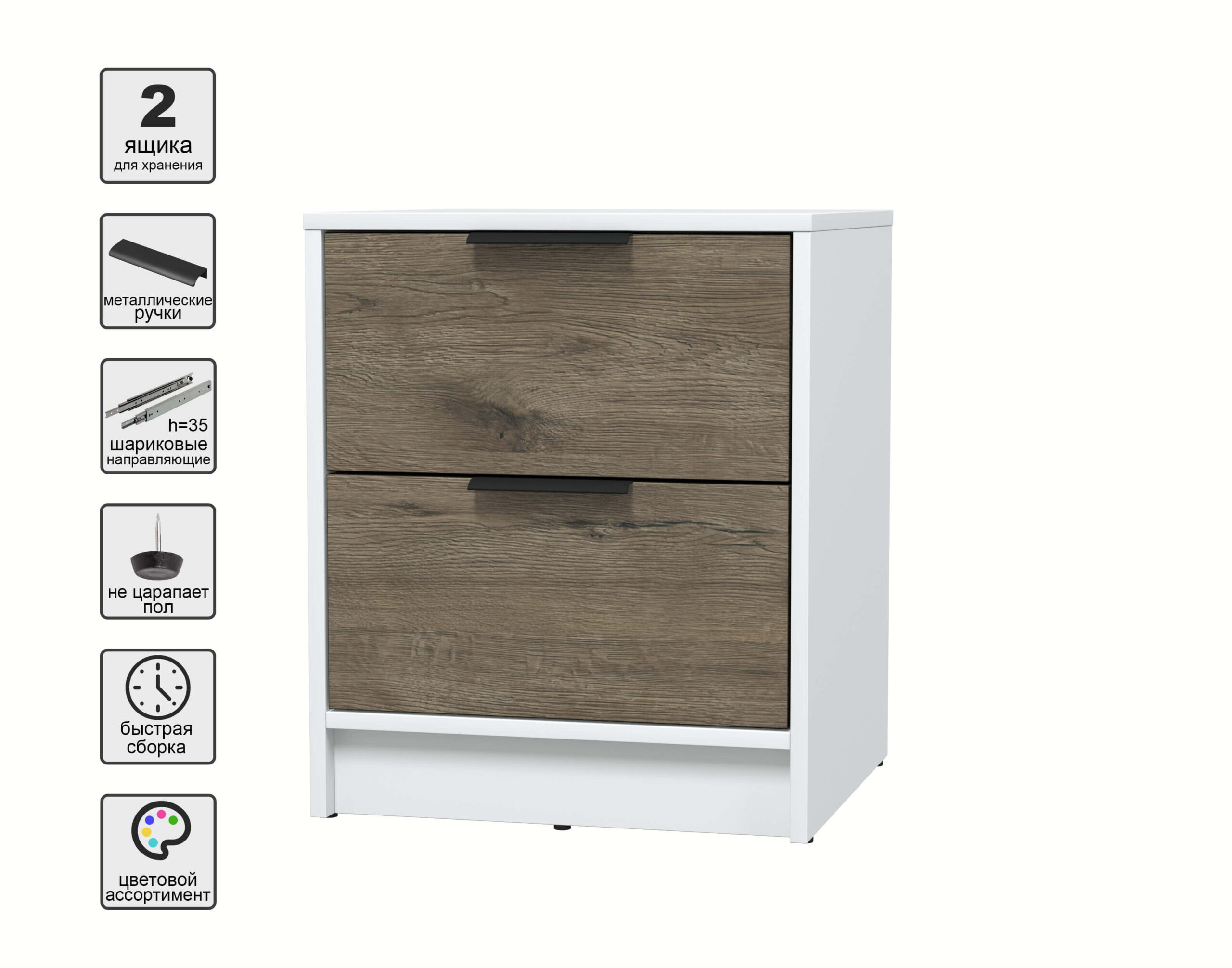 ТУМБА ПРИКРОВАТНАЯ КТ-ТК1-57 (БЕЛЫЙ ЛДСП/ ДУБ ВЕЛЛИНГТОН ЛДСП) Ш477 В572 Г451 - Yuta.by