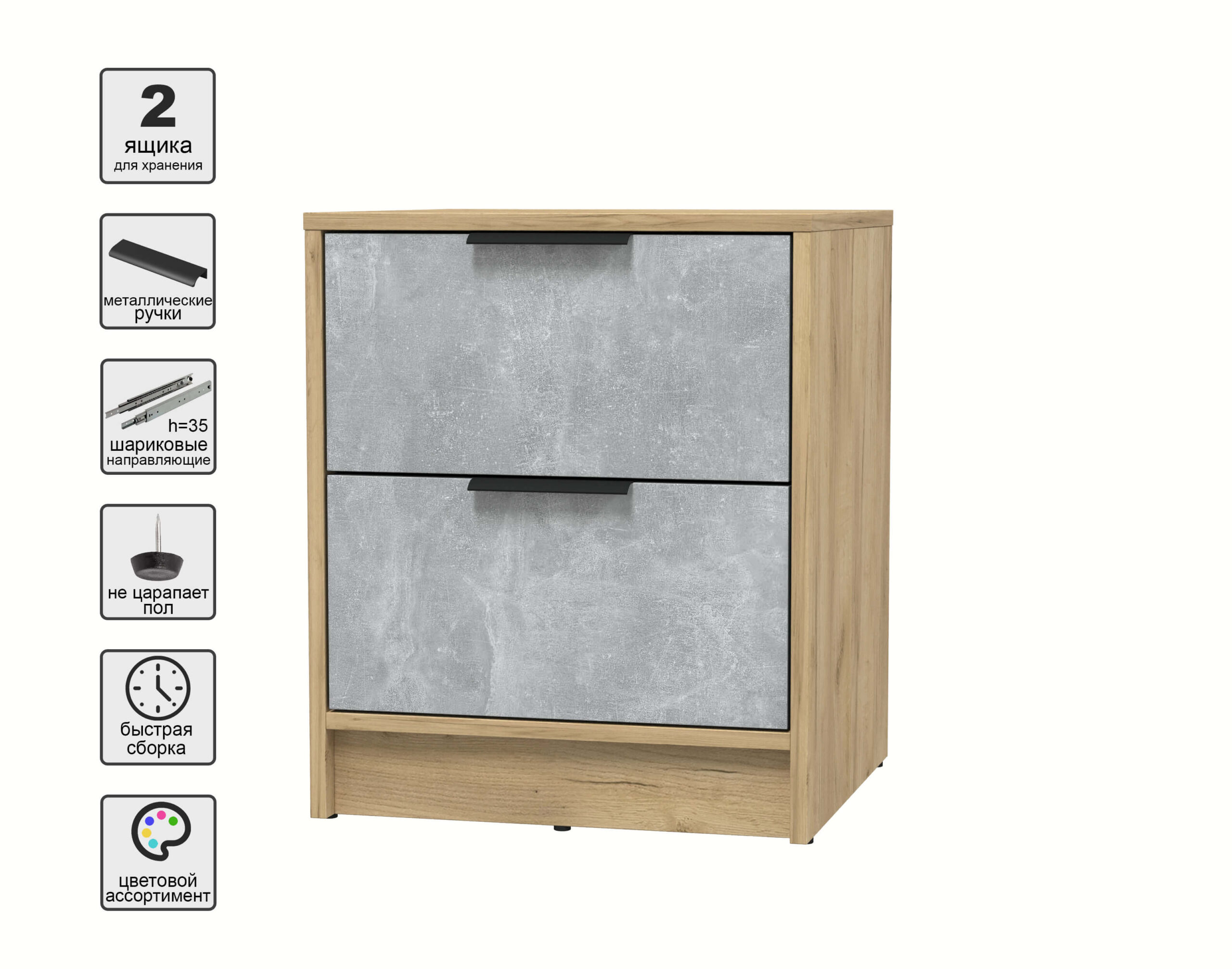 ТУМБА ПРИКРОВАТНАЯ КТ-ТК1-57 (ДУБ ЗОЛОТОЙ ЛДСП/ БЕТОН ЛДСП) Ш477 В572 Г451 - Yuta.by