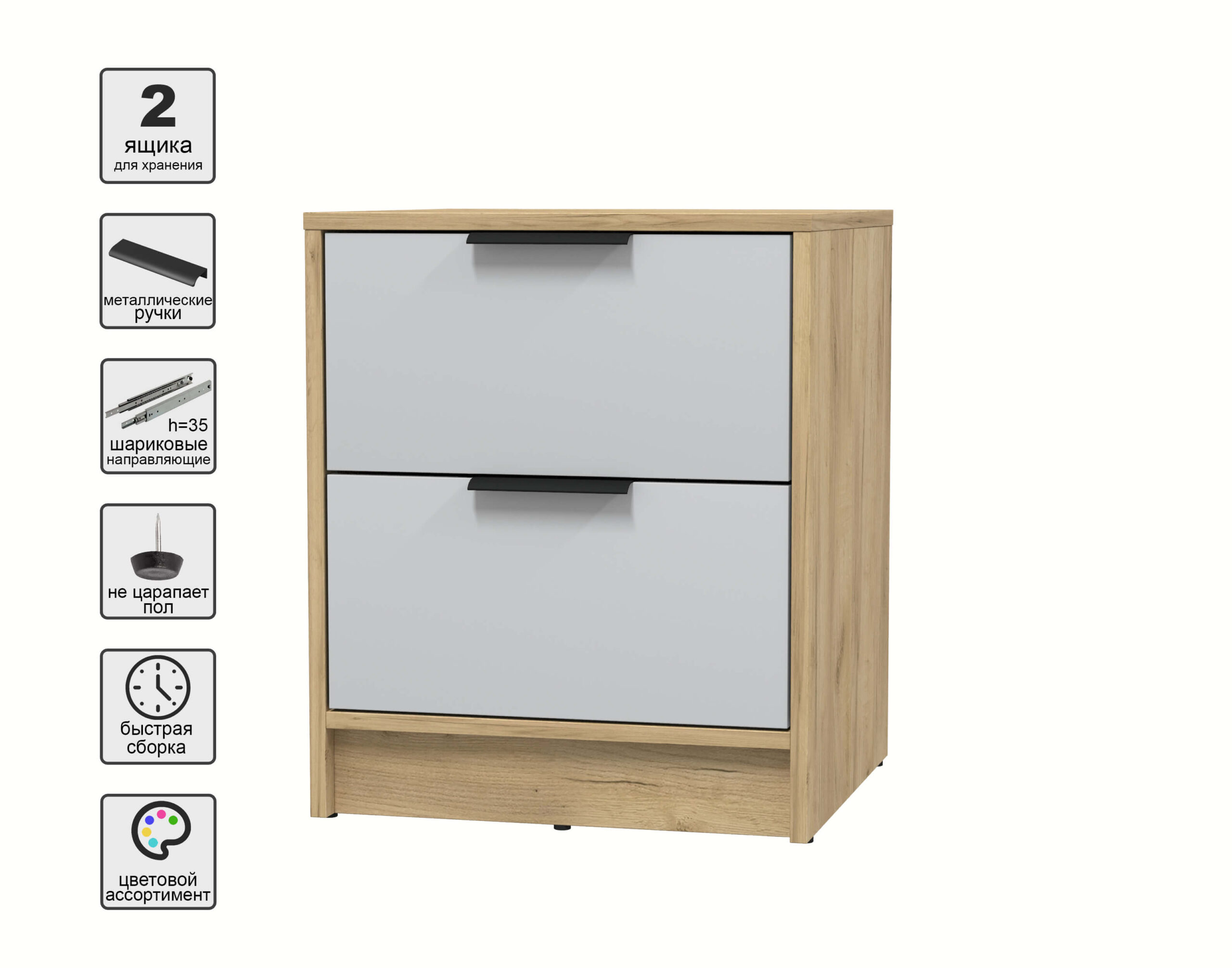 ТУМБА ПРИКРОВАТНАЯ КТ-ТК1-57 (ДУБ ЗОЛОТОЙ ЛДСП/ СЕРЫЙ ЛДСП) Ш477 В572 Г451 - Yuta.by