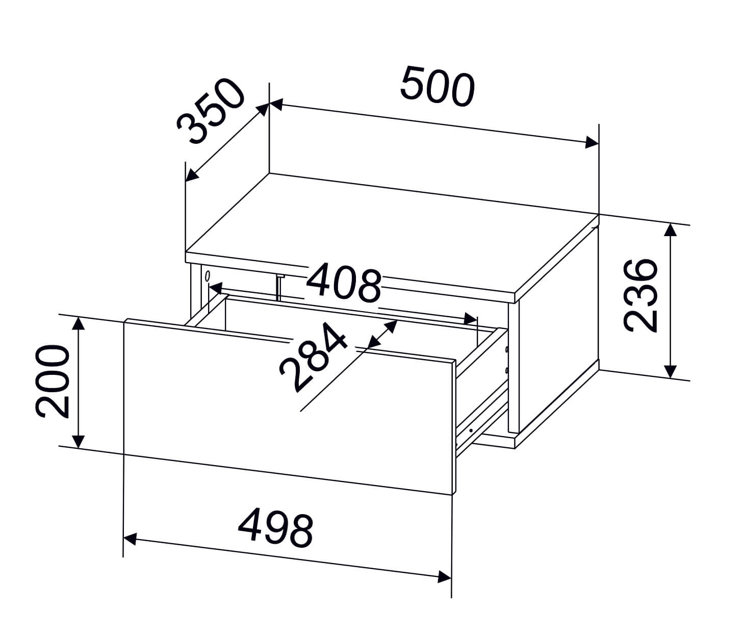 ТУМБА ПРИКРОВАТНАЯ QZ-ТП (ДУБ НОКС/ ЧЕРНЫЙ) Ш500 В236 Г350 - Yuta.by